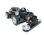 技術參數和標準配備: 外形尺寸:460mm(長)×270mm(寬)×175mm(高) 重 量:11.5Kg使用電壓:DC24V,功率:75W作業行程:標準配備20米,可根據要求任意擴展至100米。 清洗管道類型及材質:矩形、方形管道,管道材質為金屬和復合材料 運動方式:4×4輪式或雙履帶驅動 運動性能參數:越障>45mm,爬坡>40°行進速度:0--12米/分(無極調速) 攝像與照明:雙前后420線工業級紅外彩色攝像頭,四前后散光型強光照明(低溫長壽命LED光源)吸塵方式:直接吸塵法專用設備